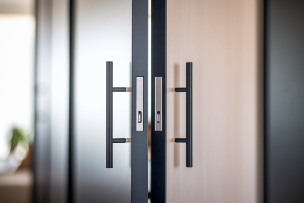 Avant de corriger le problème, comprenons pourquoi cet espace existe. Ce petit jour n’est pas un défaut, mais une nécessité technique. Le rail de la porte coulissante a besoin de place pour fonctionner correctement, sans compter l’épaisseur de la poignée qui demande aussi son espace.